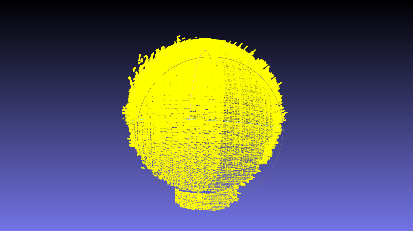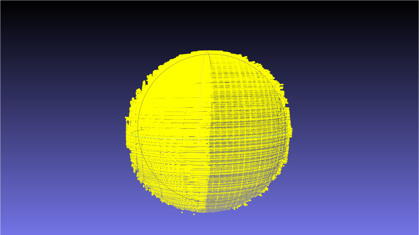 基于改进的算法对球体表面进行重建,得到约 17W 条点云数据,在 Meshlab 中对点云数据进行渲染,实验结果如下。