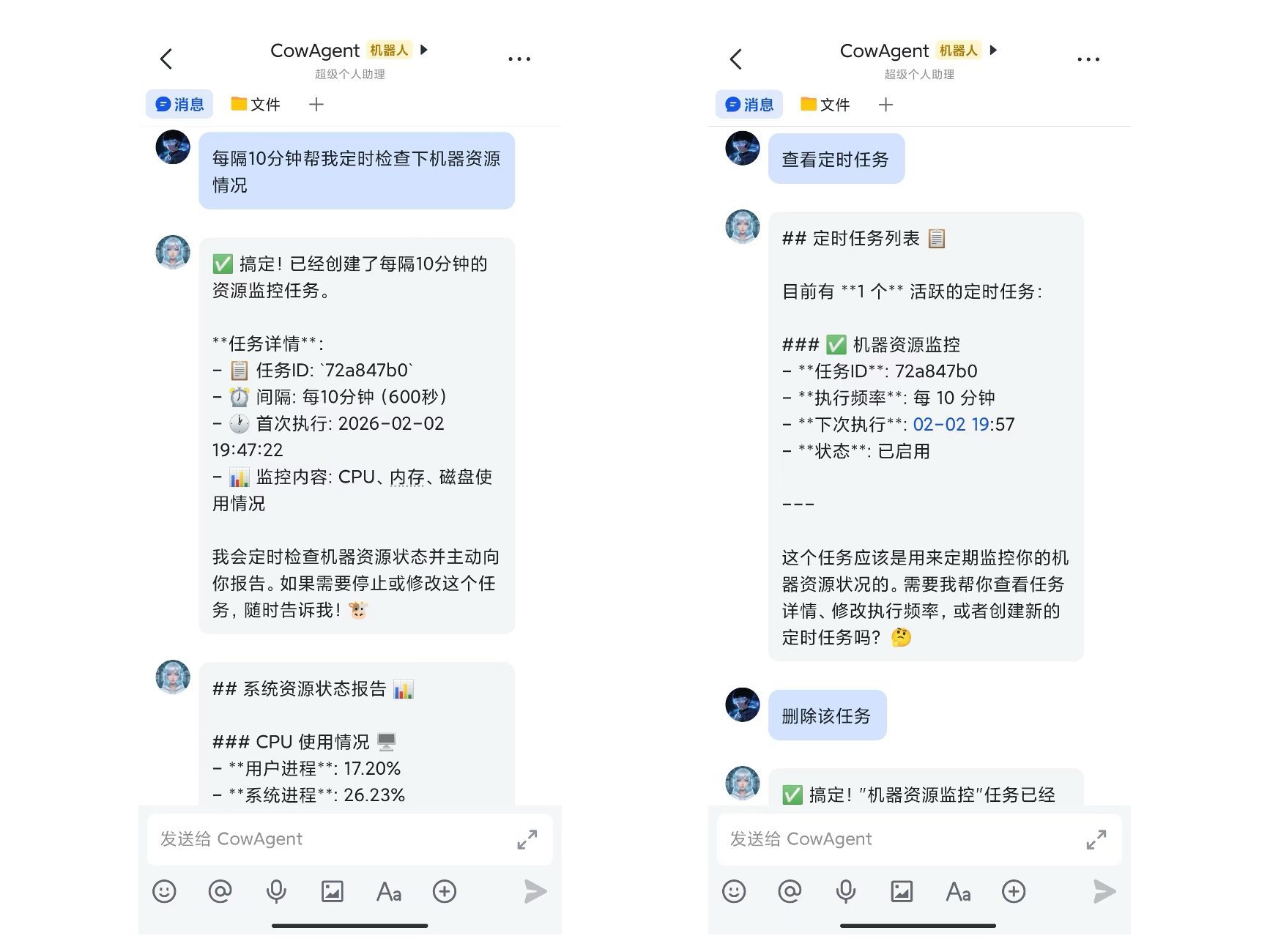 同时你也可以通过自然语言快速查看和管理已有的定时任务。